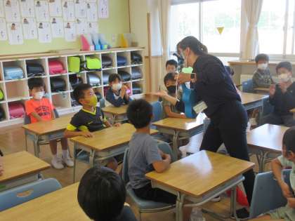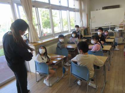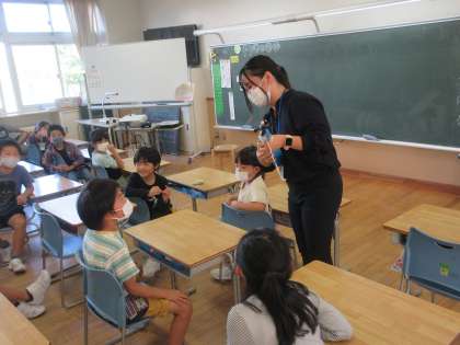 今日は、ALTの先生による外国語活動がありました。子供たちは、先生の奏でるウクレレのリズムに乗って、名前を自己紹介していました。みんなノリノリで大喜びでした。