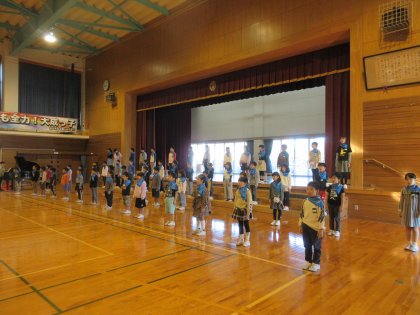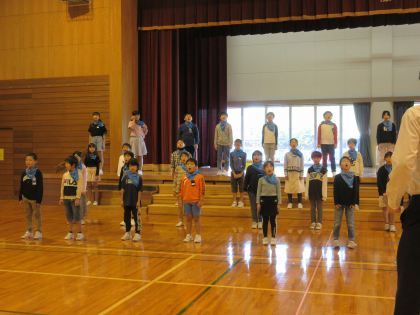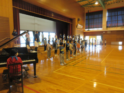 今日の合同練習では、子供たちは全員バンダナをつけて、全体を通してみました。バンダナ姿をばっちりときめ、朝からきれいな歌声を体育館に響かせていました。本番まであと少し。がんばるぞ!