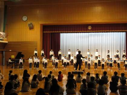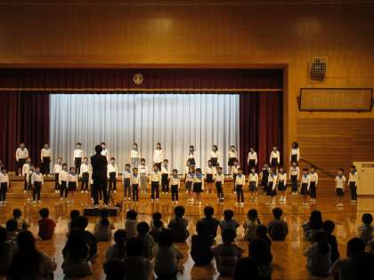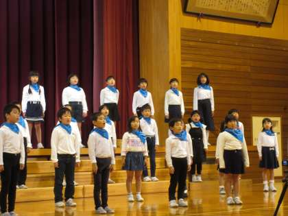 今日は、本番1回目の校内発表会でした。一人一人の思いが全校のみんなの心に届いたと思います。本当に美しい歌声でした。衣装もきまっていますね。