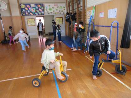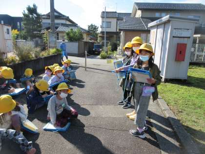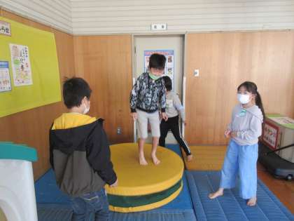 今日は、1回目の町たんけん。児童館、海、白岩川方面に出かけました。児童館では、いろいろな遊具を使って遊びました。