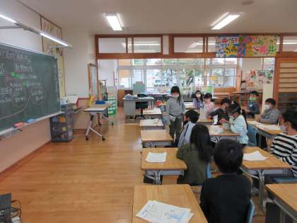 一昨日の町たんけんの振り返りをみんなでしました。児童館の特色や、いろいろな学年の子供たちが遊べるようになっていること、白岩川の自然の美しさ、水橋を守る防波堤や人々の存在への感謝など、とても多くのことを学んだことが発表からも感じられました。子供たちの成長が嬉しく思いました。