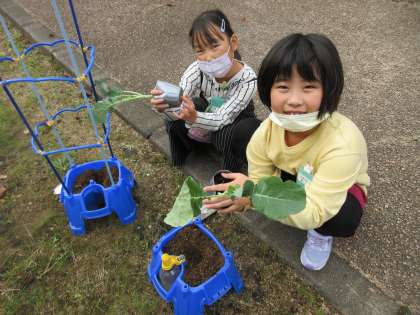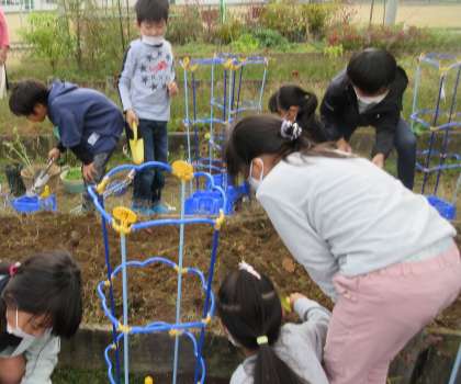 秋植え野菜のブロッコリーを植えました。以前の夏野菜の学習では、お世話の仕方を工夫してがんばっていた子供たち。その経験を大いに生かしてほしいと願っています。4か月後ぐらいから収穫できるということで、みんな楽しみにしています。