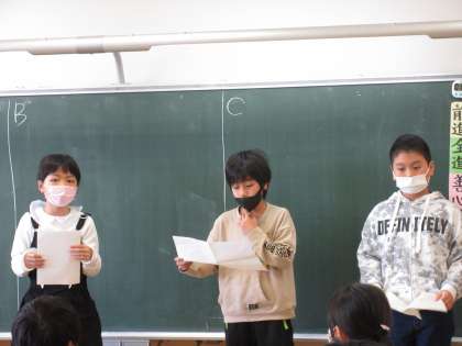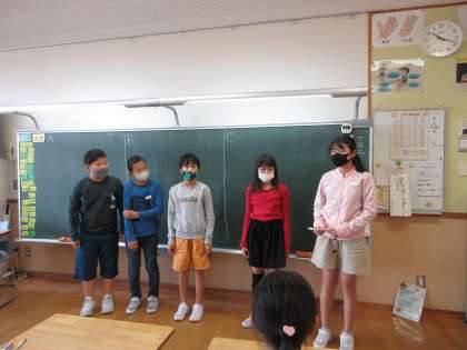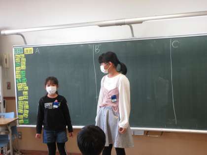 国語の話し合いの学習で決めたクラス集会を行いました。めあては「全力で楽しんでみんなで協力して思い出をつくる」です。司会役や、はじめの言葉役、ゲーム担当に分かれて、集会を運営しました。