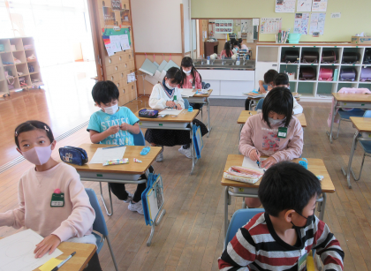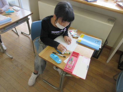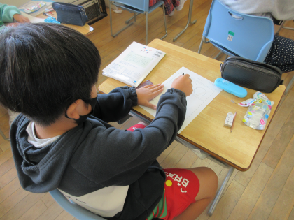 算数科では、初めてコンパスを使って円をかく学習をしました。半径の長さを合わせて、針をさす場所を決め、コンパスを回すという動きに、子供たちは何度もチャレンジしました。使い方をマスターするようがんばっています。