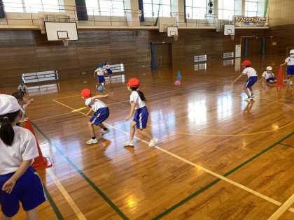 体育で「シュートサッカー」という学習をしました。子供たちは、どうしたらたくさんシュートが決まるのかについて、団で分かれて真剣に考えました。今日は最後の試合だったので、今まで以上に真剣に取り組みました。
