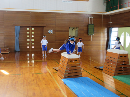 体育科では、跳び箱運動をしました。子供たちは、これまでよりも高い段や台上前転にも挑戦していました。上手に跳べるようになったときには、とても嬉しそうな顔を見せていました。