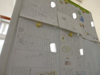 社会科では校外学習の新聞を作っています。子供たちは新聞記者になりきり、たくさん学習したことを新聞に書き表していました。楽しい新聞がどんどんできています。