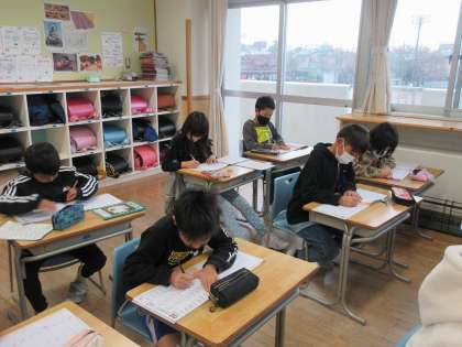 スキルアップタイムの時間は漢字練習を行っています。今日は、新出漢字を使った語句の練習です。間違えやすいポイントを意識しながら集中して練習しました。