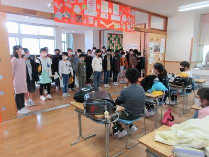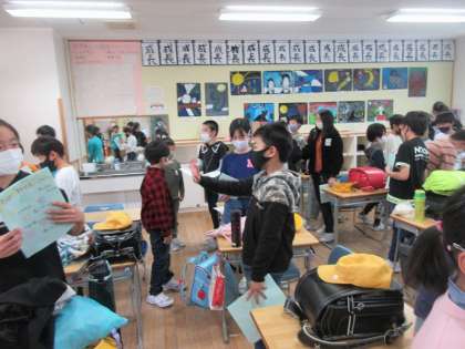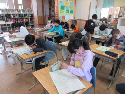 一緒に宿泊学習に行った5年生に手紙を書きました。活動ごとにやり方を教えてくれたり、困っていたときに助けてくれたり、4年生はいろいろな場面で5年生にお世話になりました。そのときの気持ちをカードに書き、5年生に手渡しました。ちょっと恥ずかしかったけれど、「手紙をありがとう」と言われてとてもうれしそうな4年生でした。