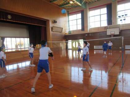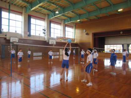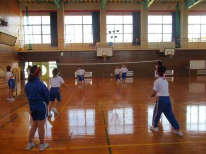 ソフトバレーボールの学習では、総当たり戦の試合を始めました。ラリーが続くように声をかけ合いながら、楽しく活動していました。