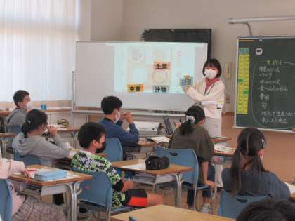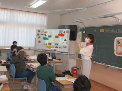 今日は、1食分の献立を立てる時のポイントを学習しました。「栄養のバランスやいろどりが大切だね」「旬の食材なら、さつまいもや大根を入れたらいいかな」「給食は味付けのバランスも考えられているんだ」と言いながら、献立の立て方について真剣に考えていました。