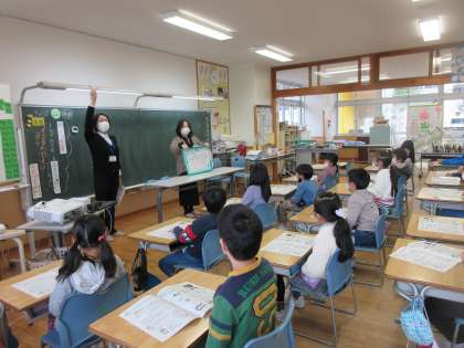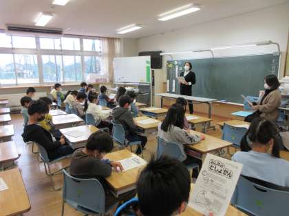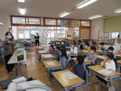 富山市立図書館水橋分館から、2名の方が図書館指導に来校されました。子供たちは、図書館に関するクイズや読み聞かせを聴き、「本大好き」の心を一層高めていました。指導後は、今日の感想を書いたり、読み聞かせの中から気に入った本のイラストを描いたりしていました。