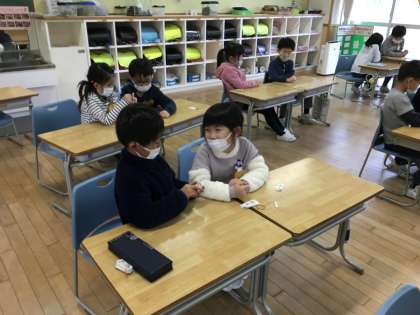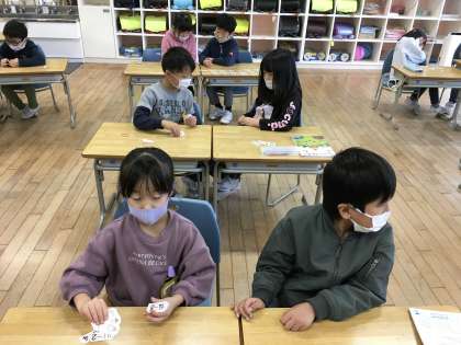 算数の学習では、算数カードを使って、くり下がりのあるひき算を素早く解く練習をしました。