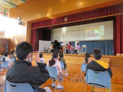 今日は、学校コンサートで生演奏を聴き、ステキな音楽にふれました。子供たちは、目をキラキラさせながら、曲に合わせて体を動かし本当に楽しそうに聴き入っていました。たっぷりと音楽の世界に浸ることができました。