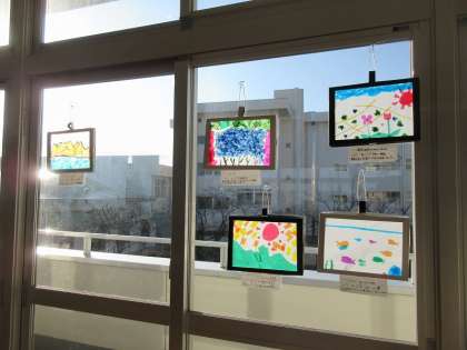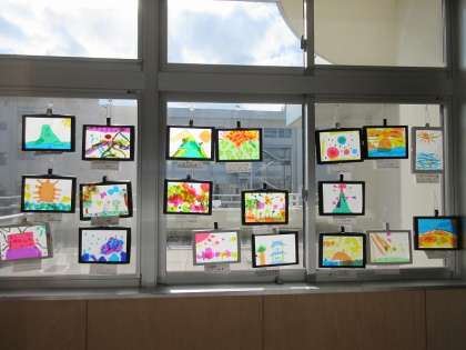 昨日とは打って変わって、朝から太陽が出ていました。子供たちは登校してくるなり、「絵に光が差し込んでる。きれい!」と叫んでいました。昨日作成した「光が差し込む絵」に朝日が当たり、本当にきれいでした。