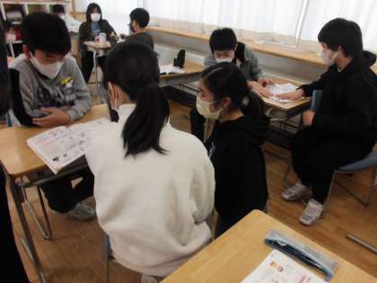 今日は、生鮮食品や加工食品を食品を選ぶときの注意点について、栄養士の先生からお話を聞いたり友達と話し合ったりしました。