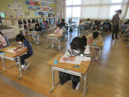 今日は、算数の学期のたしかめを行いました。子供たちは2学期に学習したことを思い出して、最後まで集中してがんばりました。