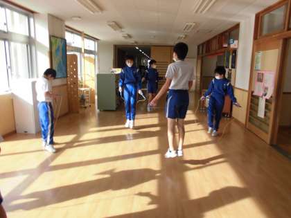 今日から、トレーニングタイムの体力つくりは縄跳び運動になりました。友達と回数を競い合いながら、元気よく活動していました。