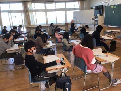 2学期も残りわずかとなりました。先週までの「学習のたしかめ」とは別に5・6年生は後期学力調査を行います。本日、5年生は、国語の学力調査を行いました。13日(水)社会、14日(木)理科、15日(金)算数の順に行います。みなさん、がんばりましょう。