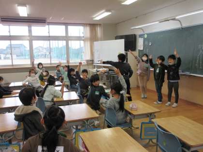 今日は、学期末に行う「2学期いっぱいがんばったね集会」で歌う歌を決めました。担当の子供たちが中心となり、全校で歌う「朝の歌」の中から曲を選びました。今月歌っている「音楽のおくりもの」に決まり、毎朝さらに歌声をレベルアップしようと呼びかけていました。