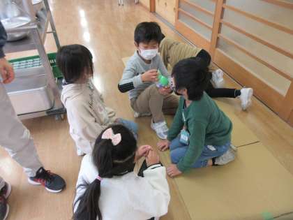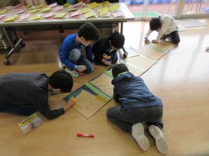 生活科「うごくおもちゃ」は、おもちゃコーナーの製作に入りました。2学期は、2年生の間で、おもちゃコーナーのお試しをすることになっています。おもちゃを飛ばしたり動かしたりする的や道を作ろうとみんなで活動しています。