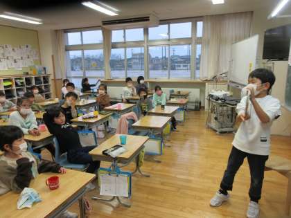 今日の朝の会では、係のクイズや今日のめあてについてのお知らせに加え、「読み聞かせコーナー」が登場しました。みんなで聴き入っていました。また、最近は「日直さんのいいねよし!」として、日直のよいところを伝え合うコーナーを行っています。友達に自分のよさを見つけて認めてもらえると本当に嬉しいですね。