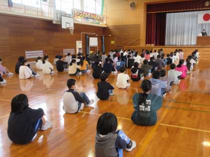 終業式では、しっかりと整列し、校長先生やお話をされる先生の方を見て聞くことができました。その後のあゆみ渡しの時間には、一人一人が2学期のがんばったことを振り返りました。帰りの会では、毎日行っている「ぜんしんシャワー」を真剣に行いました。