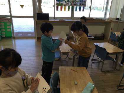 算数の学習で数の表の見方を学習しました。子供たちは数字の並びの規則性に驚いていました。その後、数の表を使った計算ガンマンをして、楽しく活動しました。