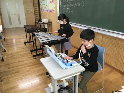 音楽の学習で「きらきらぼし」を演奏しました。鉄琴・木琴・ピアニカのそれぞれの音の違いを楽しみながら、楽しく演奏することができました。