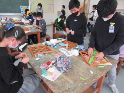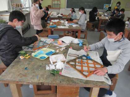 富山県美術館による企画「START☆2022」に出展する作品を制作しました。子供たちは、飾りの付け方を工夫したり、枠の色を丁寧に塗ったりしながら、楽しく活動していました。