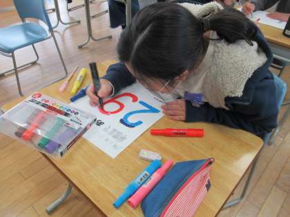 卒業カウントダウンカレンダーを作りました。卒業まであと31日となりました。一日一日を大切に過ごしていってほしいと思います。