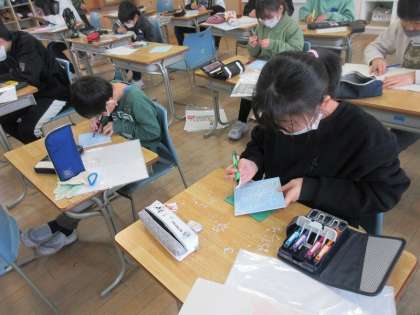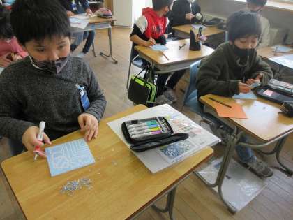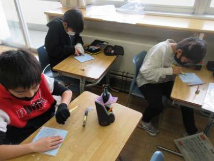 今日は、下絵を写した版を彫り進めました。試し刷りをして彫り具合を確かめていました。