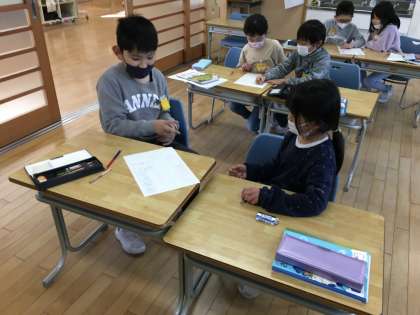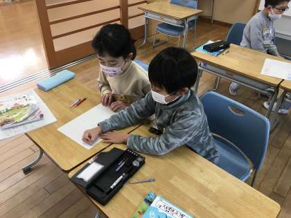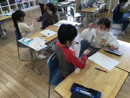 算数で陣取りゲームをしました。ジャンケンをして勝った方が色を塗っていくゲームを通して、自分の陣地の広さを競い合いました。