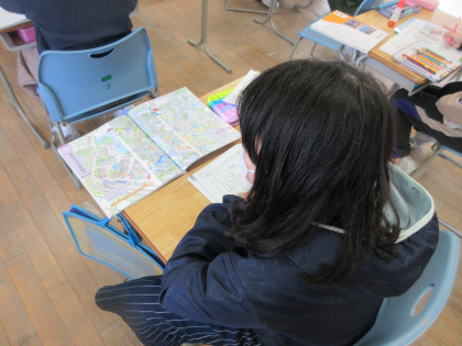 社会科では、くらしのうつりかわりの学習がスタートしました。今日は今と昔でどのような違いがあるのか考えました。教科書を見て、「建物の数が増えている」「汽車が新幹線に変わっている」など、色々な違いや変化を見つけました。