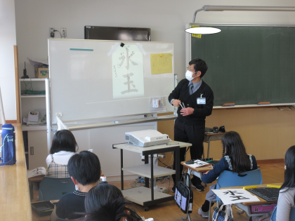 書写は3年生のまとめに入っています。「水玉」という漢字を、一画一画丁寧に書きました。3年生で学んだことを思い出し、最後まで頑張りました。