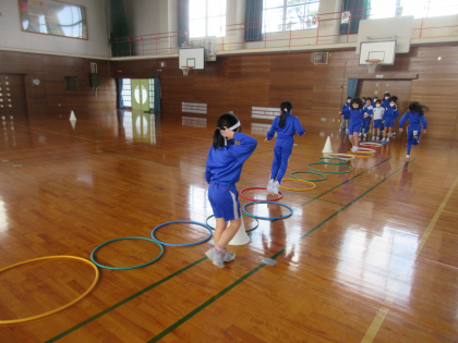 体育科 フラフープを使って体を動かそう(3年生)