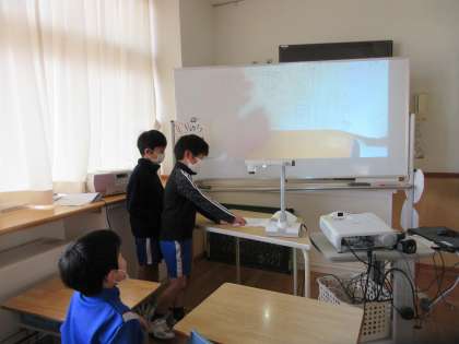 今日は朝の会で「えがお係」が作った絵本の読み聞かせがありました。プロジェクターでイラストを映して書いてあるせりふを読むとみんな大喜び。朝から楽しい気持ちでスタートできました。これからも続きを読むということで、みんな楽しみにしています。