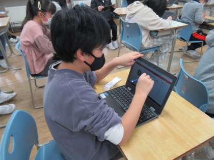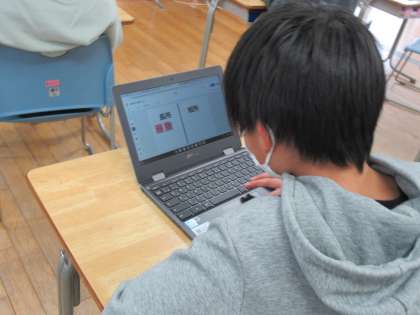 クロームブックを活用し、ジャムボードの付箋に自分の考えを書き込んだり、学習のまとめとしてスマイルネクストの問題を解いたりしました。