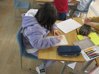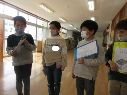 総合的な学習の時間では、調べた「大豆のひみつ」の発表練習をしています。発表原稿を作ったり、他の人に発表の様子を見てもらったりなど、着々と準備を進めています。
