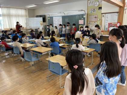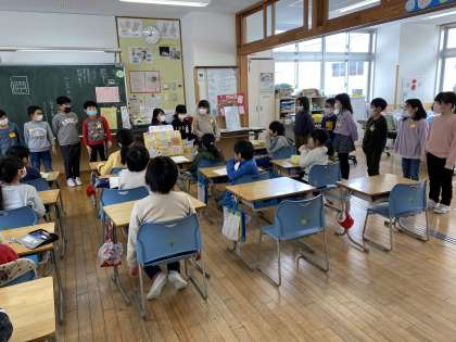 2年生が開催した「おもちゃまつり」のお礼を2年生へ伝えました。