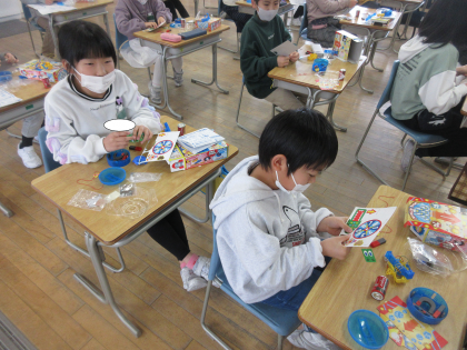 理科では、これまで学習した磁石を使って色々なおもちゃを作りました。磁石の性質を学習しながら、楽しく活動できました。