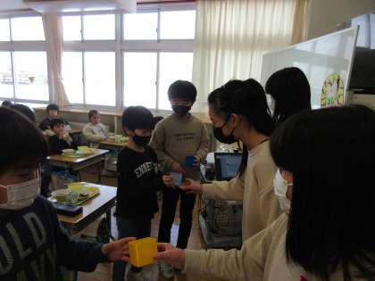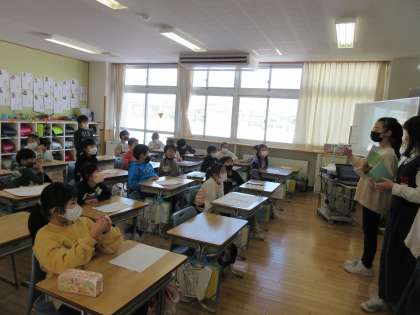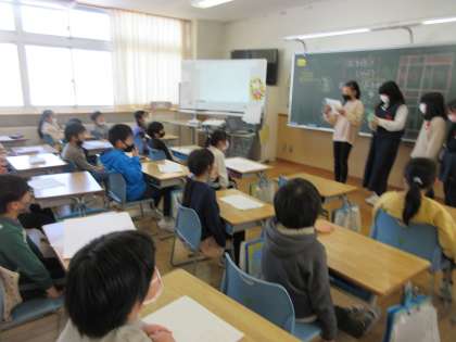朝、5年生が2年生の教室を訪れ、招待状作りを依頼されました。祝う会の活動だ!とみんな大はりきりで引き受けました。早速、製作に取りかかっています。