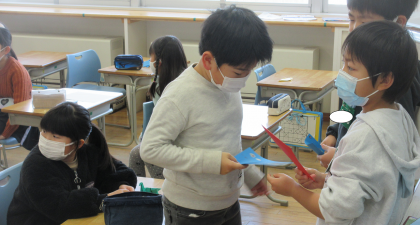 朝の会では、様々な係がクラスの友達に向けてお知らせしています。新しく作ったマンガを紹介したり整理整頓のチェックをしたりするなど、クラスを楽しく、よりよくするための活動を頑張っています。