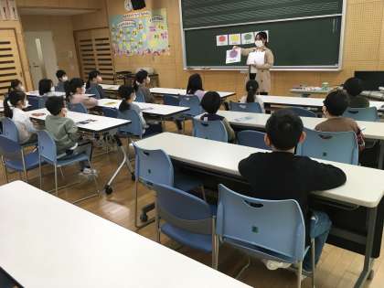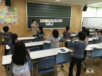 今日は外国語の学習がありました。ALTのクリスティーン先生と一緒に、楽しく活動しました。