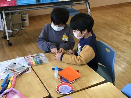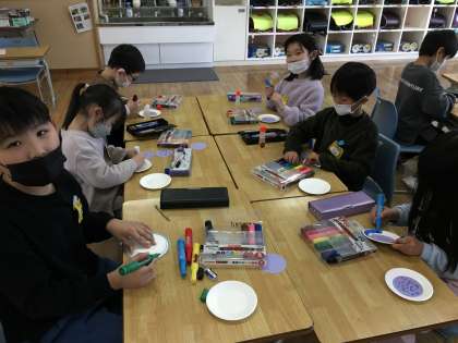 図工の学習で6年生へのプレゼントを作りました。今までありがとうの気持ちやこれからもがんばってねという気持ちを込めて丁寧に作っていました。自分にできそうな仕事を探して進んで取り組むことができました。