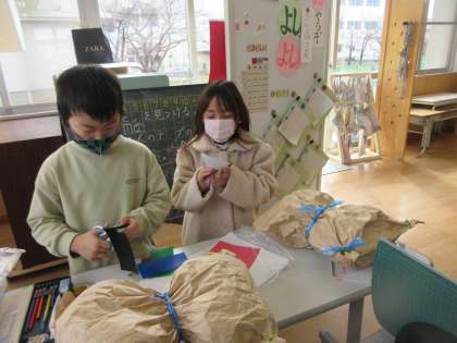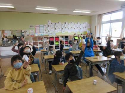 今日も、楽しい活動をたくさん行いました。算数ははこを作ってしらbル活動、生活はブロッコリーへの肥料やり、図工は「くしゃくしゃ、きゅっ」をしました。
