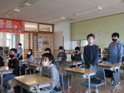 5年生は、真剣な態度で参加し、6年生の引き継ぎの言葉に対して、「はい!」と力強く返事をしていました。