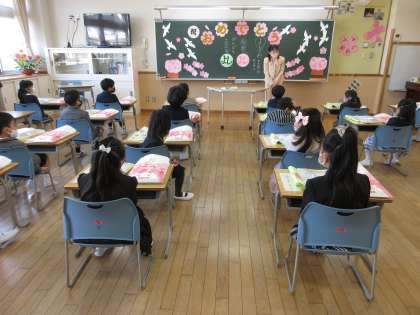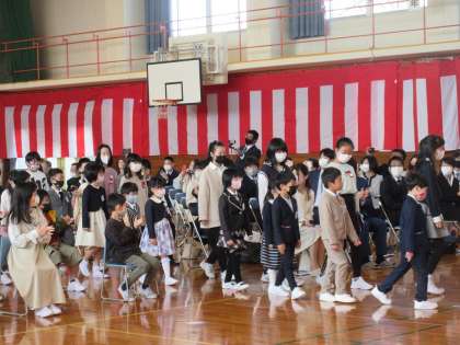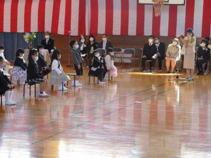 満開の桜の中、20名のかわいい1年生が入学しました。わくわく、どきどきしながらの入場。1年生紹介では、全員が「はいっ」としっかり返事をしていました。教室に戻ってからは、目をきらきらと輝かせながら1年生担任の話を聞いていました。