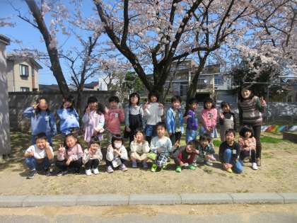 どきどきわくわくの授業が始まりました。今日は、国語の挿絵を見て想像したことを話し合いました。みんな進んで手を挙げて、進んで発表していました。また、のびのびタイムは、グラウンドで遊んだり、満開の桜の木の下で集合写真を撮ったりしました。