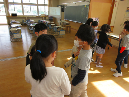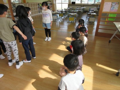国語科では、友達同士で協力して様々な順番に並ぶ活動をしました。話し合いながら並んだり、身振り手振りでコミュニケーションをとりながら並んだりしました。上手に並ぶには、「声をかけあうこと」「指示をしっかり聞くこと」を学習しました。
